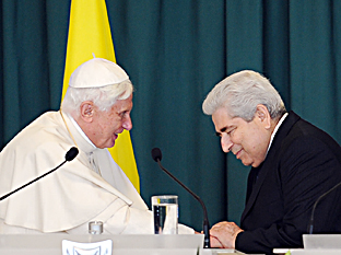 Quale successore di Pietro vengo in modo speciale a salutare i Cattolici di Cipro per confermarli nella fede (cfr. Lc 22, 32) ed incoraggiarli ad essere esemplari sia come cristiani che come cittadini, e a vivere pienamente il loro ruolo nella società a beneficio sia della Chiesa, sia dello Stato. Durante la mia permanenza tra di voi consegnerò anche l'Instrumentum Laboris, un documento di lavoro in vista della Assemblea Speciale per il Medio Oriente del Sinodo dei Vescovi, che si terrà in seguito, a Roma, quest'anno. Tale Assemblea esaminerà molti aspetti della presenza della Chiesa nella regione e le sfide che i Cattolici devono affrontare, talvolta in circostanze difficili, vivendo la comunione con la Chiesa Cattolica ed offrendo la loro testimonianza a servizio della società e del mondo. Cipro è perciò un luogo appropriato dal quale lanciare la riflessione della nostra Chiesa sul posto della secolare comunità cattolica del Medio Oriente, la nostra solidarietà con tutti i Cristiani della regione e la nostra convinzione che essi hanno un insostituibile ruolo da sostenere nella pace e nella riconciliazione fra i suoi popoli.