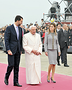 Siento una profunda alegría al estar de nuevo en España, que ha dado al mundo una pléyade de grandes santos, fundadores y poetas, como Ignacio de Loyola, Teresa de Jesús, Juan de la Cruz, Francisco Javier, entre otros muchos; la que en el siglo xx ha suscitado nuevas instituciones, grupos y comunidades de vida cristiana y de acción apostólica y, en los últimos decenios, camina en concordia y unidad, en libertad y paz, mirando al futuro con esperanza y responsabilidad. Movida por su rico patrimonio de valores humanos y espirituales, busca asimismo superarse en medio de las dificultades y ofrecer su solidaridad a la comunidad internacional.