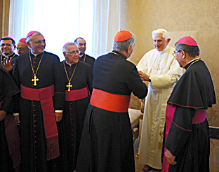 5. Lo spirito di comunione vi deve portare a prestare speciale attenzione ai vostri sacerdoti. Questi, collaboratori immediati del ministero episcopale, devono essere i primi destinatari della vostra cura pastorale, devono essere trattati con la vicinanza e con fraterna amicizia. Ciò li aiuterà a svolgere con dedizione il ministero ricevuto e anche ad accogliere con spirito filiale, se fosse necessario, gli avvertimenti riguardo aspetti che devono migliorare o correggere. Perciò, vi incoraggio a raddoppiare gli sforzi per stimolare lo zelo pastorale tra i presbiteri, in particolare durante questo prossimo anno sacerdotale che ho voluto indire.