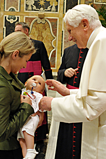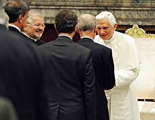 Gli eventi politici che hanno avuto luogo in Europa alla fine del secolo scorso le hanno finalmente permesso di respirare con i suoi due polmoni, per riutilizzare l'espressione del mio venerato predecessore. Tutti sappiamo che c'è ancora molta strada da percorrere per rendere questa realtà effettiva. Gli scambi economici e finanziari fra l'est e l'ovest europei si sono indubbiamente sviluppati, ma c'è stato un reale progresso umano? La liberazione da ideologie totalitarie non è stata utilizzata unilateralmente per il solo sviluppo economico a detrimento di uno sviluppo più umano, nel rispetto della dignità e la nobiltà dell'uomo, e non ha, a volte, ignorato le ricchezze spirituali che hanno modellato l'identità europea? Gli interventi della Banca a favore dei Paesi dell'Europa dell'est, del centro e del sud-est, avranno permesso, ne sono certo, di correggere squilibri a favore di un processo basato sulla giustizia e sulla solidarietà. Queste sono indispensabili per il presente e per il futuro dell'Europa. Come me, anche voi sapete che oggi il mondo e l'Europa attraversano un momento particolarmente grave di crisi economica e finanziaria. Questo tempo non deve condurre a limitazioni che si basano solo su un'analisi strettamente finanziaria. Deve, al contrario, permettere alla Banca di Sviluppo di mostrare la sua originalità rafforzando l'integrazione sociale, la gestione dell'ambiente e lo sviluppo delle infrastrutture pubbliche a vocazione sociale. Incoraggio vivamente il lavoro della banca in questo senso e in quello della solidarietà. Essa sarà così fedele alla sua vocazione.