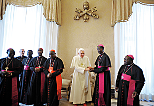 La seconda Assemblea speciale per l'Africa del Sinodo dei Vescovi, di recente celebrazione, è stata memorabile per la sua esortazione a compiere rinnovati sforzi al servizio di una più profonda evangelizzazione nel vostro continente (cfr. Messaggio al Popolo di Dio, n. 15). La forza della parola di Dio e la conoscenza e l'amore di Gesù non possono che trasformare la vita delle persone, migliorando il loro modo di pensare e di agire. Alla luce del messaggio evangelico, siete consapevoli della necessità di incoraggiare i cattolici dell'Uganda ad apprezzare pienamente il sacramento del matrimonio nella sua unità e indissolubilità e il diritto sacro alla vita. Vi raccomando di aiutare sacerdoti e laici a resistere alla seduzione della cultura materialistica dell'individualismo che ha messo radici in così tanti Paesi. Continuate a esortare a una pace duratura, basata sulla giustizia e sulla generosità verso i bisognosi, in uno spirito di dialogo e riconciliazione. Promuovendo un ecumenismo autentico, siate vicini in particolare a quanti sono più vulnerabili alla diffusione delle sette. Spingeteli a rifiutare sentimenti superficiali e una predicazione che renderebbe vana la croce di Cristo (cfr. 1 Cor 1, 17). In questo modo, continuerete, come Pastori responsabili, a mantenere loro e i loro figli fedeli alla Chiesa di Cristo. A questo proposito, sono lieto di apprendere che il vostro popolo trova conforto spirituale in forme popolari di evangelizzazione come i pellegrinaggi organizzati al Santuario dei Martiri ugandesi a Namugongo, dove l'attiva presenza pastorale dei Vescovi e di numerosi sacerdoti guida la pietà dei pellegrini verso un rinnovamento come individui e comunità. Continuate a sostenere tutti coloro che, con cuore generoso, si prendono cura dei profughi e degli orfani delle zone lacerate dalla guerra. Incoraggiate quanti assistono le persone afflitte dalla povertà, dall'Aids e da altre malattie, insegnando loro a vedere in chi servono il volto sofferente di Gesù (cfr. Mt 25, 40). Un'evangelizzazione rinnovata crea a sua volta una cultura cattolica più profonda che si radica nella famiglia. Grazie ai vostri resoconti quinquennali so che i programmi educativi nelle parrocchie, nelle scuole e nelle associazioni e i vostri interventi su materie di interesse comune, di fatto, stanno diffondendo una cultura cattolica più forte. Un grande bene può derivare da laici ben preparati e attivi nei mezzi di comunicazione sociale, nella politica e nella cultura. Dovrebbero essere offerti corsi per una formazione adeguata, in particolare nella dottrina sociale cattolica, avvalendosi delle risorse dell'Università dei Martiri ugandesi o di altre istituzioni. Incoraggiateli a essere attivi ed espliciti al servizio di ciò che è nobile e giusto. In questo modo, tutta la società beneficerà di cristiani ferventi e ben preparati, che assumeranno ruoli guida al servizio del bene comune. Anche i movimenti ecclesiali meritano il vostro sostegno per il loro contributo positivo alla vita della Chiesa in molti settori.