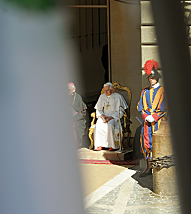 madre e le figlie gareggiavano nello stimarsi e nel servirsi a vicenda. Già negli anni in cui era superiora del monastero di san Disibodo, Ildegarda aveva iniziato a dettare le visioni mistiche, che riceveva da tempo, al suo consigliere spirituale, il monaco Volmar, e alla sua segretaria, una consorella a cui era molto affezionata, Richardis di Strade.Come sempre accade nella vita dei veri mistici, anche Ildegarda volle sottomettersi all'autorità di persone sapienti per discernere l'origine delle sue visioni, temendo che esse fossero frutto di illusioni e che non venissero da Dio. Si rivolse perciò alla persona che ai suoi tempi godeva della massima stima nella Chiesa: san Bernardo di Chiaravalle, del quale ho già parlato in alcune Catechesi. Questi tranquillizzò e incoraggiò Ildegarda. Ma nel 1147 ella ricevette un'altra approvazione importantissima. Il Papa Eugenio iii, che presiedeva un sinodo a Treviri, lesse un testo dettato da Ildegarda, presentatogli dall'Arcivescovo Enrico di Magonza. Il Papa autorizzò la mistica a scrivere le sue visioni e a parlare in pubblico. Da quel momento il prestigio spirituale di Ildegarda crebbe sempre di più, tanto che i contemporanei le attribuirono il titolo di "profetessa teutonica". È questo, cari amici, il sigillo di un'esperienza autentica dello Spirito Santo, sorgente di ogni carisma: la persona depositaria di doni soprannaturali non se ne vanta mai, non li ostenta e, soprattutto, mostra totale obbedienza all'autorità ecclesiale. Ogni dono distribuito dallo Spirito Santo, infatti, è destinato all'edificazione della Chiesa, e la Chiesa, attraverso i suoi Pastori, ne riconosce l'autenticità.