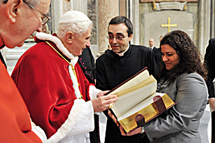 Cari amici delle Università di Roma, a voi, che percorrete il cammino affascinante ed impegnativo della ricerca e della elaborazione culturale, il Verbo Incarnato domanda di condividere con Lui la pazienza del "costruire". Costruire la propria esistenza, costruire la società, non è opera che possa essere realizzata da menti e cuori distratti e superficiali. Occorrono una profonda azione educativa e un continuo discernimento, che devono coinvolgere tutta la comunità accademica, favorendo quella sintesi tra formazione intellettuale, disciplina morale e impegno religioso che il beato John Henry Newman aveva proposto nella sua "Idea di Università". Nei nostri tempi si avverte il bisogno di una nuova classe di intellettuali capaci di interpretare le dinamiche sociali e culturali offrendo soluzioni non astratte, ma concrete e realistiche. L'Università è chiamata a svolgere questo ruolo insostituibile e la Chiesa se ne fa convinta e fattiva sostenitrice. La Chiesa di Roma, in particolare, è da molti anni impegnata nel sostenere la vocazione dell'Università e a servirla con il contributo semplice e discreto di tanti sacerdoti che operano nelle cappellanie e nelle realtà ecclesiali. Vorrei esprimere il mio apprezzamento al Cardinale Vicario e ai suoi collaboratori per il programma di pastorale universitaria che, quest'anno, in sintonia con il progetto diocesano, è ben sintetizzato dal tema: "Ite, missa est... nel cortile dei gentili". Il saluto al termine della celebrazione eucaristica - "Ite, missa est" - invita tutti ad essere testimoni di quella carità che trasforma la vita dell'uomo e così innesta nella società il germe della civiltà dell'amore. Il vostro programma di offrire alla città di Roma una cultura a servizio dello sviluppo integrale della persona umana, come ho indicato nell'Enciclica Caritas in veritate, è un concreto esempio del vostro impegno a promuovere comunità accademiche nelle quali si matura e si esercita quella che Giovanni Battista Montini, quando era Assistente della Fuci, chiamava "la carità intellettuale".