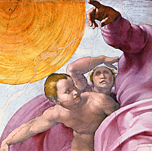 Potremo meglio capire allora la grandezza di Michelangelo il quale inaugura, nella volta della Sistina, la "maniera grande" che esalta e trasfigura l'iconografia tradizionale offrendo all'immaginario delle generazioni future gli archetipi sublimi della "Creazione dell'Uomo" e del "Peccato Originale".
