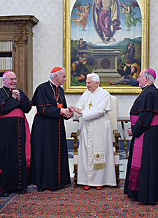 I extend a warm welcome to all of you on your ad Limina visit to Rome. I thank you for the kind words that Cardinal Keith Patrick O'Brien has addressed to me on your behalf, and I assure you of my constant prayers for you and for the faithful entrusted to your care. Your presence here expresses a reality that lies at the heart of every Catholic diocese - its relationship of communio with the See of Peter, and hence with the universal Church. Pastoral initiatives that take due account of this essential dimension bring authentic renewal:  when the bonds of communion with the universal Church, and in particular with Rome, are accepted joyfully and lived fully, the people's faith can grow freely and yield a harvest of good works.
