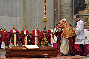 Vi siete radunati attorno all'altare del Signore per accompagnare con la celebrazione del Sacrificio eucaristico, in cui si attualizza il Mistero pasquale, l'ultimo viaggio del caro Cardinale Luigi Poggi, che il Signore ha chiamato a sé. Nel rivolgere a ciascuno di voi il mio cordiale saluto, ringrazio in particolare il Cardinale Sodano che, quale Decano del Collegio Cardinalizio, ha presieduto la Santa Messa esequiale.