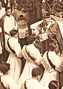 La seconda immagine che vorrei riprendere è il giorno dell'ordinazione sacerdotale. Il duomo è sempre stato il centro della nostra vita, come pure in seminario eravamo una famiglia ed è stato padre Höck a fare di noi una vera famiglia. Il duomo era il centro e lo è diventato per tutta la vita nel giorno indimenticabile dell'ordinazione sacerdotale. Sono tre i momenti che mi sono rimasti particolarmente impressi. Anzitutto lo stare distesi per terra durante le litanie dei santi. Stando prostrati a terra, si diventa ancora una volta consapevoli di tutta la propria povertà e ci si domanda: davvero ne sono capace? E allo stesso tempo risuonano i nomi di tutti i santi della storia e l'implorazione dei fedeli: "Ascoltaci; aiutali". Cresce così la consapevolezza: sì, sono debole e inadeguato, ma non sono solo, ci sono altri con me, l'intera comunità dei santi è con me, essi mi accompagnano e quindi posso percorrere questo cammino e diventare compagno e guida per gli altri. Il secondo, l'imposizione delle mani da parte dell'anziano, venerabile cardinale Faulhaber - che ha imposto a me, a tutti noi, le mani in modo profondo ed intenso - e la consapevolezza che è il Signore a porre le mani su di me e dice: appartieni a me, non appartieni semplicemente a te stesso, ti voglio, sei al mio servizio; ma anche la consapevolezza che questa imposizione delle mani è una grazia, che non crea solo obblighi, ma che è soprattutto un dono, che Lui è con me e che il suo amore mi protegge e mi accompagna. Poi c'era ancora il vecchio rito, in cui il potere di rimettere i peccati veniva conferito in un momento a parte, che iniziava quando il vescovo diceva, con le parole del Signore: "Non vi chiamo più servi, ma amici". E sapevo - noi sapevamo - che questa non è solo una citazione di Giovanni 15, ma una parola attuale che il Signore mi sta rivolgendo adesso. Egli mi accetta come amico; sono in questo rapporto d'amicizia; egli mi ha donato la sua fiducia, e in questa amicizia posso operare e rendere altri amici di Cristo. Alla terza immagine lei ha già fatto allusione, signor Sindaco: ho potuto trascorrere altri indimenticabili tre anni e mezzo con i miei genitori nel Lerchenfeldhof e quindi sentirmi ancora una volta pienamente a casa. Questi ultimi tre anni e mezzo con i miei genitori sono stati per me un dono immenso e hanno davvero reso Frisinga la mia casa. Penso alle feste, a come abbiamo celebrato insieme il Natale, la Pasqua, la Pentecoste; alle passeggiate che abbiamo fatto insieme nei prati; a come siamo andati nel bosco a prendere i rami d'abete e il muschio per il presepe, e alle nostre escursioni nei campi lungo l'Isar. Così Frisinga è diventata per noi una vera patria, e come patria rimane nel mio cuore.
