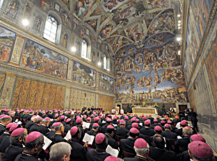 Nella Cappella Sistina, nel pomeriggio di sabato 18 ottobre, Benedetto XVI ha guidato la recita dei primi vespri della ventinovesima domenica per annum, in occasione della partecipazione del Patriarca ecumenico Bartolomeo, al Sinodo dei Vescovi. Al termine della preghiera, il Papa ha introdotto le riflessioni del Patriarca.
