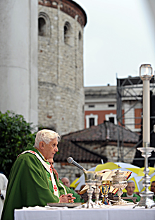Com'è noto, di Papa Pacelli è in corso la causa di canonizzazione, un fatto religioso che esige di essere rispettato da tutti e che nella sua specificità è di esclusiva competenza della Santa Sede. Nel 1965 Paolo VI, annunciando in concilio l'avvio delle cause di Pio XII e Giovanni XXIII, ne spiegò le ragioni:  "Sarà così assecondato il desiderio, che per l'uno e per l'altro è stato in tal senso espresso da innumerevoli voci; sarà così assicurato alla storia il patrimonio della loro eredità spirituale; sarà evitato che alcun altro motivo, che non sia il culto della vera santità e cioè la gloria di Dio e l'edificazione della sua Chiesa, ricomponga le loro autentiche e care figure per la nostra venerazione e per quella dei secoli futuri". Da parte sua Benedetto XVI, celebrando a San Pietro in memoria di Pio XII, ha esortato a pregare "perché prosegua felicemente la causa di beatificazione". È un'esortazione che accolgo volentieri e alla quale mi associo, ricordando e celebrando un Romano Pontefice che è stato grande, e alla cui conoscenza questo convegno contribuirà sicuramente molto.