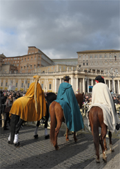 Anche le Feste Natalizie, da poco trascorse, hanno permesso a tanti di apprezzare il vostro lavoro umile, ma indispensabile, perché il pellegrinaggio a Roma costituisca per ciascun visitatore un'occasione unica per sperimentare la gioia della fede e i valori della fratellanza, dell'accoglienza e del rispetto reciproco, sull'esempio di Colui che essendo Dio è diventato Bambino per amore nostro.