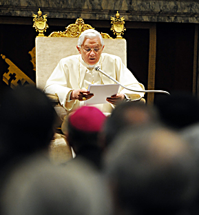 Sono particolarmente grato a questa Congregazione, alla quale il Concilio Ecumenico Vaticano ii, in linea con l'atto costitutivo con cui veniva fondata nel 1622, ha confermato il compito di "regolare e coordinare, in tutto il mondo, sia l'opera missionaria sia la cooperazione missionaria" (Decr. Ad gentes, 29). È una missione immensa, quella dell'evangelizzazione, specialmente in questo nostro tempo, in cui l'umanità soffre una certa mancanza di pensiero riflessivo e sapienziale (cfr. Caritas in veritate, 19. 31) e si diffonde un umanesimo che esclude Dio (cfr. ibid. 78). Per questo è ancora più urgente e necessario illuminare i nuovi problemi che emergono con la luce del Vangelo che non muta. Siamo infatti convinti che il Signore Gesù Cristo, testimone fedele dell'amore del Padre, "con la sua morte e risurrezione, è la principale forza propulsiva per il vero sviluppo di ogni persona e dell'umanità intera" (ibid. 1). All'inizio del mio ministero come Successore dell'Apostolo Pietro ho affermato con forza: "noi esistiamo per mostrare Dio agli uomini. E solo laddove si vede Dio, comincia veramente la vita. Solo quando incontriamo in Cristo il Dio vivente, noi conosciamo che cosa è la vita... Non vi è niente di più bello che essere raggiunti, sorpresi dal Vangelo, da Cristo. Non vi è niente di più bello che conoscere Lui e comunicare agli altri l'amicizia con lui" (Omelia all'inizio del ministero petrino, 24 aprile 2005). La predicazione del Vangelo è un inestimabile servizio che la Chiesa può offrire all'umanità intera che cammina nella storia. Provenienti dalle Diocesi di tutto il mondo, voi siete un segno eloquente e vivo della cattolicità della Chiesa, che si concretizza nel respiro universale della missione apostolica, "fino agli ultimi confini della terra" (At 1, 8), "sino alla fine del mondo" (Mt 28, 20), perché nessun popolo o ambiente siano privati della luce e della grazia di Cristo. Questo è il senso, la traiettoria storica, la missione e la speranza della Chiesa.