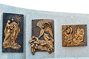 Il Vangelo, come sappiamo, non ha conservato alcuna parola di Giuseppe, il quale svolge la sua attività nel silenzio. È lo stile che lo caratterizza in tutta l'esistenza, sia prima di trovarsi di fronte al mistero dell'azione di Dio nella sua sposa, sia quando - consapevole di questo mistero - è accanto a Maria nella Natività - rappresentata nella terza formella. In quella santa notte, a Betlemme, con Maria e il Bambino, c'è Giuseppe, al quale il Padre Celeste ha affidato la cura quotidiana del suo Figlio sulla terra, una cura svolta nell'umiltà e nel silenzio.